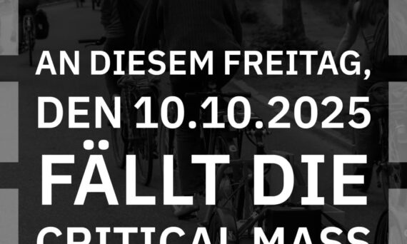 Leider müssen wir euch mitteilen, dass die Critical Mass am 10. Oktober ausfällt. Wir wünschen euch noch einen schönen Oktober und sehen uns dann aber im November hoffentlich wieder.